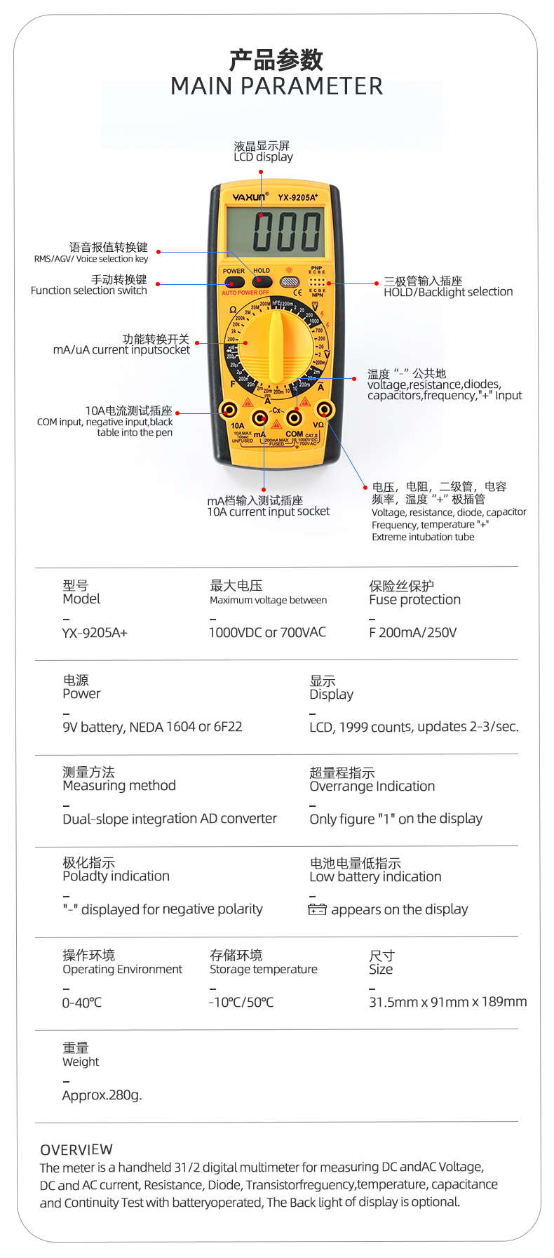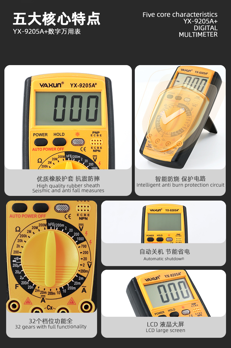 Tester Digital Yaxun YX-9205A+ Incluye Pila 9V